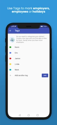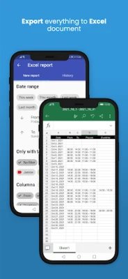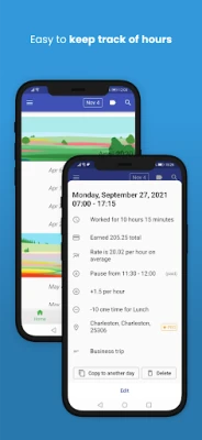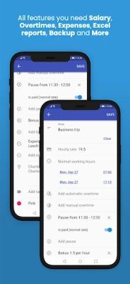 Optimoi työnkulkuasi mallipohjilla toistuville asetuksille ja määrittele erilaisia vuorotyyppejä selkeyden takaamiseksi. Käytä tunnisteita ja muistiinpanoja organisoimaan merkintöjäsi, ja hyödynnä visuaalista lajittelua värin mukaan nopeaan yleiskuvaan. Pienyrityksille sovellus tarjoaa mahdollisuuden seurata tiimityöskentelyä tehokkaasti. Mielenrauha on taattu automaattisen pilvivarmuuskopioinnin ansiosta, ja voit jakaa mukautetun ajanjakson tiedot Excel-muodossa Dropboxin, sähköpostin tai Google Driven kautta. Lisäksi kalenteriwidget mahdollistaa nopean pääsyn tietoihin suoraan aloitusnäytöltäsi.