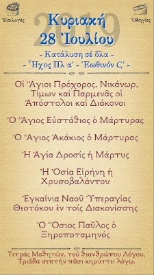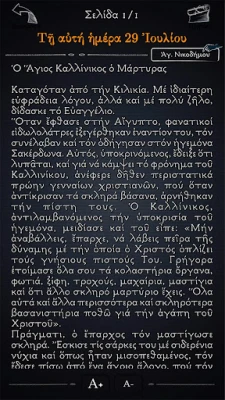 Syvenny ortodoksisen uskon rikkauteen ennennäkemättömällä tavalla. Tämä uraauurtava sovellus tuo kätevästi ulottuvillesi koko ortodoksisen kirkon hengellisen perinnön. Se tarjoaa kattavan kokoelman päivittäisiä pyhien elämänkertoja ja synaksareja, mukaan lukien Pyhän Nikodemoksen kokoelman syvälliset kirjoitukset. Mukana on myös koko Pyhä Raamattu, sekä Vanha että Uusi testamentti, sekä päivittäiset evankeliumi- ja apostolilukemat, jotka ohjaavat sinua joka askeleella. Sovellus sisältää kaikki keskeiset liturgiset kirjat, kuten Menaion, Parakletike, Triodion, Pentekostarion, Horologion ja Psalttari, tarjoten ohjeet pyhien toimitusten järjestykseen.