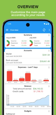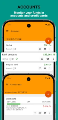 Unohda talousstressi ja saavuta mielenrauha Fast Budget - Expense Managerin avulla. Tämä älykäs työväline on suunniteltu antamaan sinulle täydellisen hallinnan varoistasi, mahdollistaen säästöjen kerryttämisen ja kulutustottumusten paremman ymmärtämisen. Sen intuitiivinen yleisnäkymä tarjoaa välittömän ja räätälöitävän visualisoinnin rahavirroistasi, näyttäen selkeästi minne rahasi menevät ja mistä ne tulevat. Seuraa helposti pankkitilejäsi ja luottokorttejasi, ja analysoi taloudellista tilannettasi dynaamisten kaavioiden kautta, jotka paljastavat saldojen ja menojen kehityksen ajan myötä.