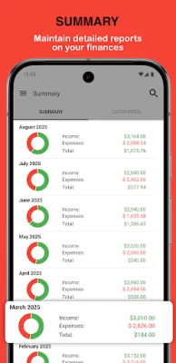 Fast Budget - Expense Manager tekee tulojen ja menojen kirjaamisesta vaivatonta ja nopeaa. Hyödynnä älykkäitä syöttötyökaluja, kuten valmiita tapahtumapohjia ja käteviä pienoisohjelmia, jotka nopeuttavat jokapäiväisiä kirjauksia. Voit myös ajastaa toistuvia tuloja ja menoja, joiden lähestyessä saat muistutuksen, jotta mikään tärkeä maksu ei jää huomaamatta. Luo yksilöllisiä budjetteja eri kategorioille ja määritä niille joustavat kestot pitääksesi aina selvillä, kuinka paljon sinulla on vielä käytettävissä. Myös kaikki kuukausittaiset ja vuosittaiset tilauksesi pysyvät helposti hallinnassa, ja saat ilmoituksen ennen niiden uusimista, välttäen yllättävät kulut.