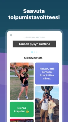 I Am Sober auttaa sinua seuraamaan edistymistäsi visuaalisesti, näyttäen selkeästi raittiiden päivien määrän sekä säästetyt rahat ja aika. Voit syventää motivaatiotasi tallentamalla henkilökohtaisia syitä ja kuvia, jotka muistuttavat sinua valintasi tärkeydestä. Päivittäiset lupaukset vahvistavat sitoutumistasi, ja sovellus tarjoaa mahdollisuuden arvioida päiväsi kulkua ja kirjata muistiinpanoja iltaisin. I Am Soberin avulla voit myös analysoida laukaisevia tekijöitä, juhlia saavutuksiasi pienistä suurimpiin ja tallentaa toipumisesi tarinaa suoraan sovellukseen – joko jaettavaksi tai henkilökohtaiseksi muistutukseksi.