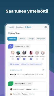 Yhteisö I Am Soberissa on korvaamaton tuki. Seuraa vieroitusoireiden aikajanaa, joka tarjoaa näkemystä odotettavissa olevista vaiheista ja antaa sinun jakaa omia kokemuksiasi muiden kanssa, valmistautuen tuleviin haasteisiin. Voit räätälöidä I Am Soberin täysin omien tarpeidesi mukaiseksi – aseta omat aikarajasi, määrittele raittiussyntymäpäiväsi ja valitse juuri sinulle sopiva motivointitapa. Räätälöity kokemus tekee toipumisestasi entistä henkilökohtaisemman ja tehokkaamman. I Am Sober tarjoaa jo itsessään kattavan työkalupakin, mutta ne, jotka etsivät vielä syvempää tukea ja lisäominaisuuksia, voivat löytää Sober Plus -tilauksesta entistäkin monipuolisempia mahdollisuuksia matkansa varrelle.