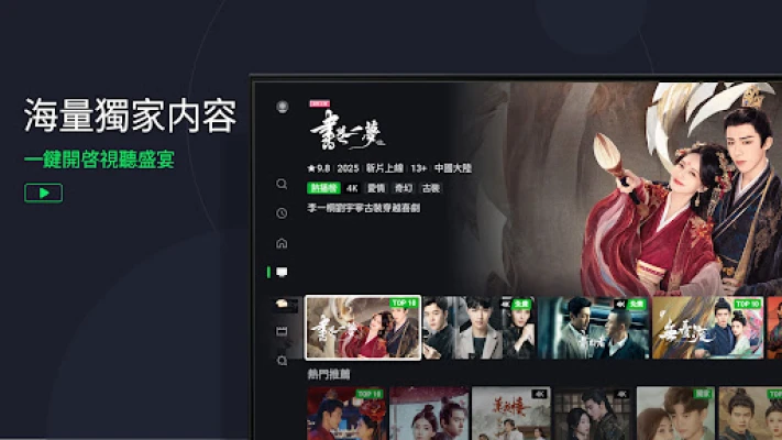 iQIYI愛奇藝(TV版) parantaa videokokemustasi monikielisillä tekstityksillä, jotka auttavat sisällön ymmärtämisessä. Koe ennennäkemättömän sujuva toisto ja nautiskele selkeästä, käyttäjäystävällisestä käyttöliittymästä. Tutustu yksinoikeudella saatavilla oleviin, suosittuihin ja aitoihin videosisältöihin.