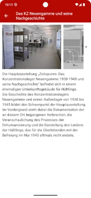KZ Gedenkstätte Neuengamme on virallinen sovellus, joka tarjoaa syvällisen katsauksen entisen keskitysleirin historiaan. Tutustu alueeseen interaktiivisen kartan avulla, löydä 113 kohdetta, historiallista materiaalia, silminnäkijäkertomuksia ja temaattisia kierroksia. Opi Neuengammen menneisyydestä, uhreista ja muistotyöstä.