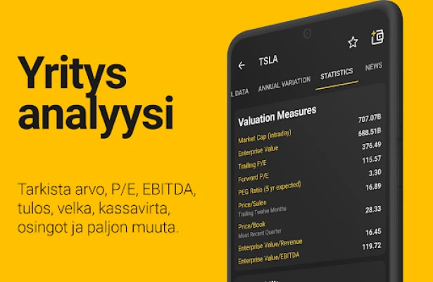 Haluatko hallita sijoituksiasi ja seurata markkinoita vaivattomasti? InvestApp tarjoaa kattavan ratkaisun niin aloitteleville sijoittajille kuin kokeneille konkareillekin. Muuta markkinatieto toiminnaksi luomalla henkilökohtainen salkkusi ja seuraamalla reaaliaikaisesti omistustesi kehitystä. Räätälöity tarkkailulistasi pitää kaikki kiinnostavat kohteet käden ulottuvilla, varmistaen, että olet aina askeleen edellä. InvestApp on suunniteltu antamaan sinulle työkalut älykkäämpien taloudellisten päätösten tekemiseen.