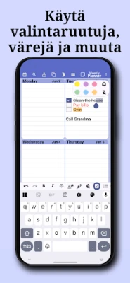 Räätälöi käyttökokemuksesi täysin vastaamaan omaa tyyliäsi ja tarpeitasi; voit mukauttaa teemoja, värejä ja asettelua luodaksesi juuri sinun näköisesi suunnittelijan. Älykkäät muistutukset ja ilmoitukset varmistavat, ettei yksikään tärkeä tapahtuma tai määräaika unohdu. Jaa suunnitelmiasi vaivattomasti perheen, ystävien tai kollegoiden kanssa sujuvamman yhteistyön saavuttamiseksi. Ja jotta pysyt aina ajan tasalla, aloitusnäytön widgetit tarjoavat välittömän yleiskuvan kalenteristasi, tehtävistäsi ja muistiinpanoistasi. Automaattinen varmuuskopiointi suojaa aina arvokkaita tietojasi.
